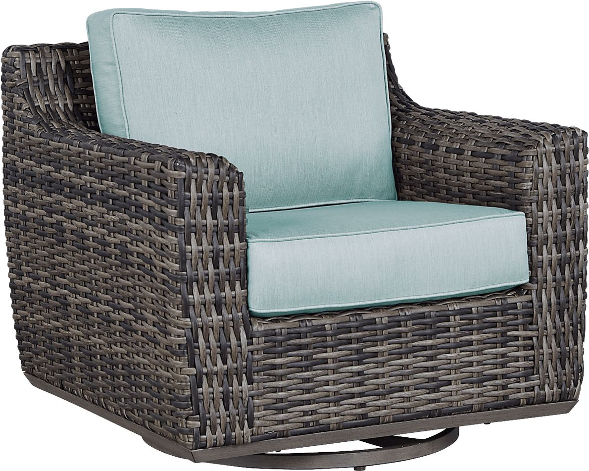 Cindy Crawford Home Montecello Gray Outdoor Swivel Rocker Chair With Seafoam Cushions Rooms To Go